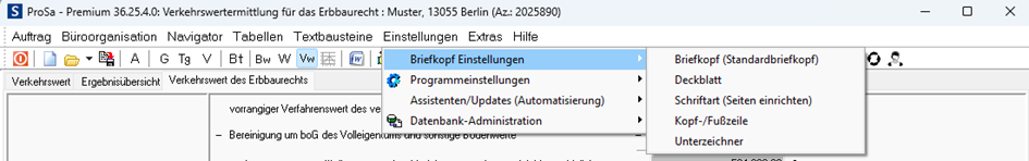 So sind beispielsweise sämtliche Konfigurationsmöglichkeiten, die das Deckblatt, Schriftarten, Briefkopf etc. betreffen unter dem neuen Menüpunkt „Briefkopfeinstellungen“ zusammengestellt.
