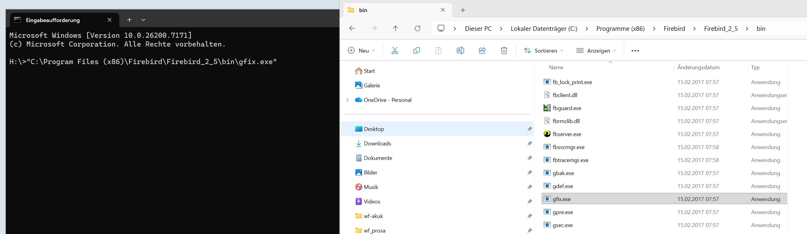 Hier im Beispiel wurde die gfix.exe einfach in die CMD-Konsole geschoben und Enter gedrückt.