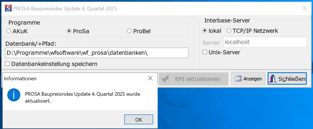 Mit dem Update wird die in Sprengnetter-ProSa / Sprengnetter-ProBel enthaltene Baupreisindextabelle aktualisiert. Neuer Stand der aktualisierten Baupreisindextabelle ist somit das 4. Quartal 2025.